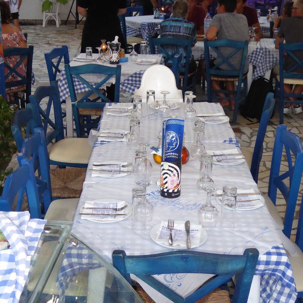 Μπορείτε να φάτε, ακούγοντας τα κύματα να πέφτουν στην παραλία, κάτω από τη σκιά των αμπελιών. Καθίστε είτε στο σκιερό αίθριο, μέσα στην ταβέρνα ή στο εστιατόριο μας στον τελευταίο όροφο που έχει φανταστική θέα ακριβώς απέναντι από τον κόλπο του Αγίου Γεωργίου. Κάθε Τρίτη και Παρασκευή Ελληνικός χορός.